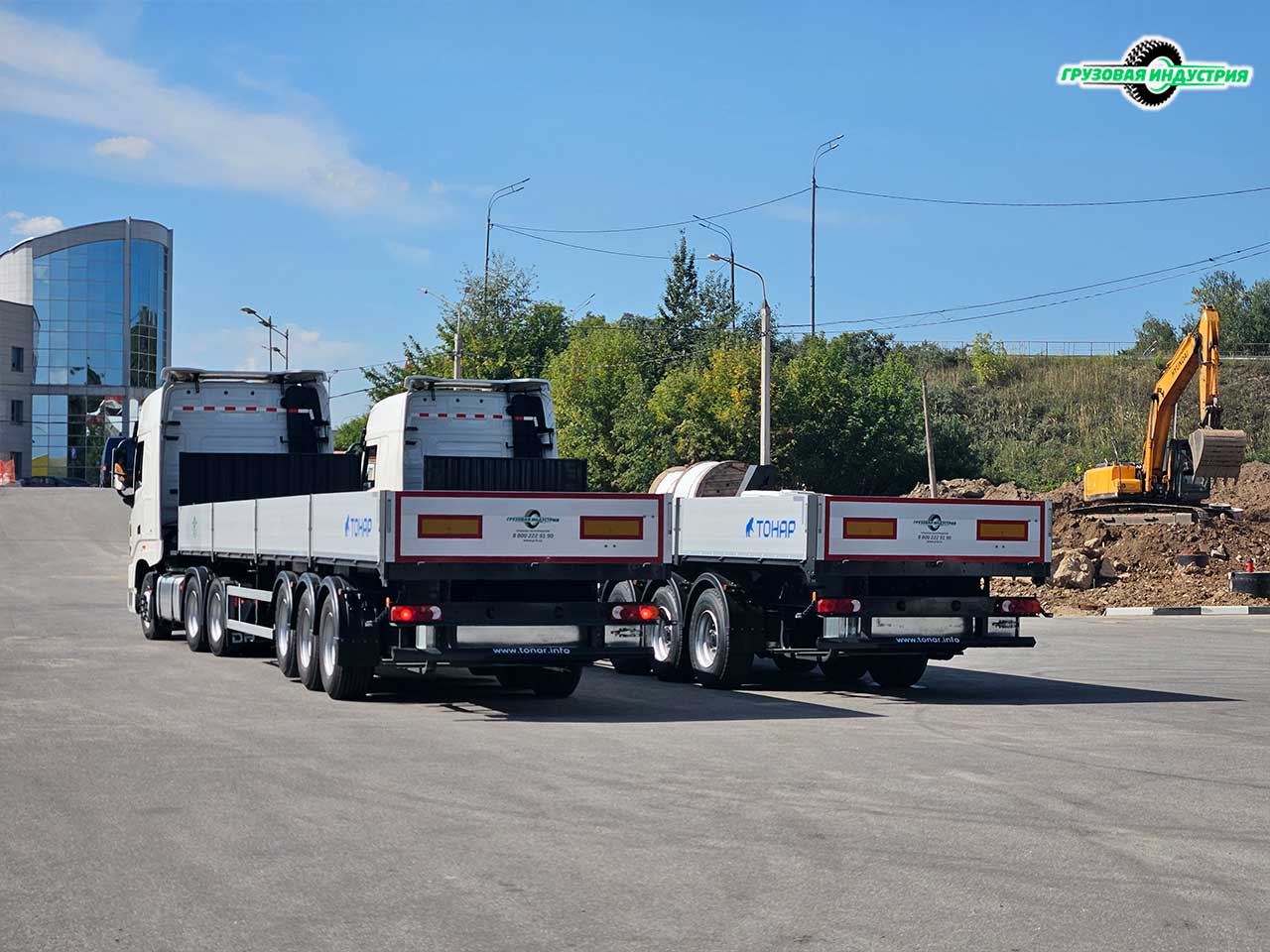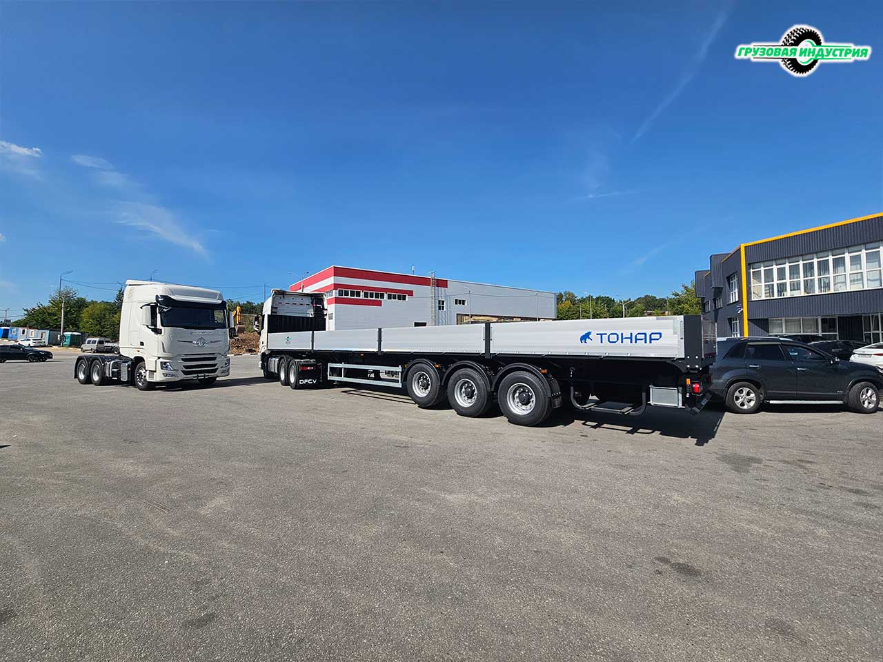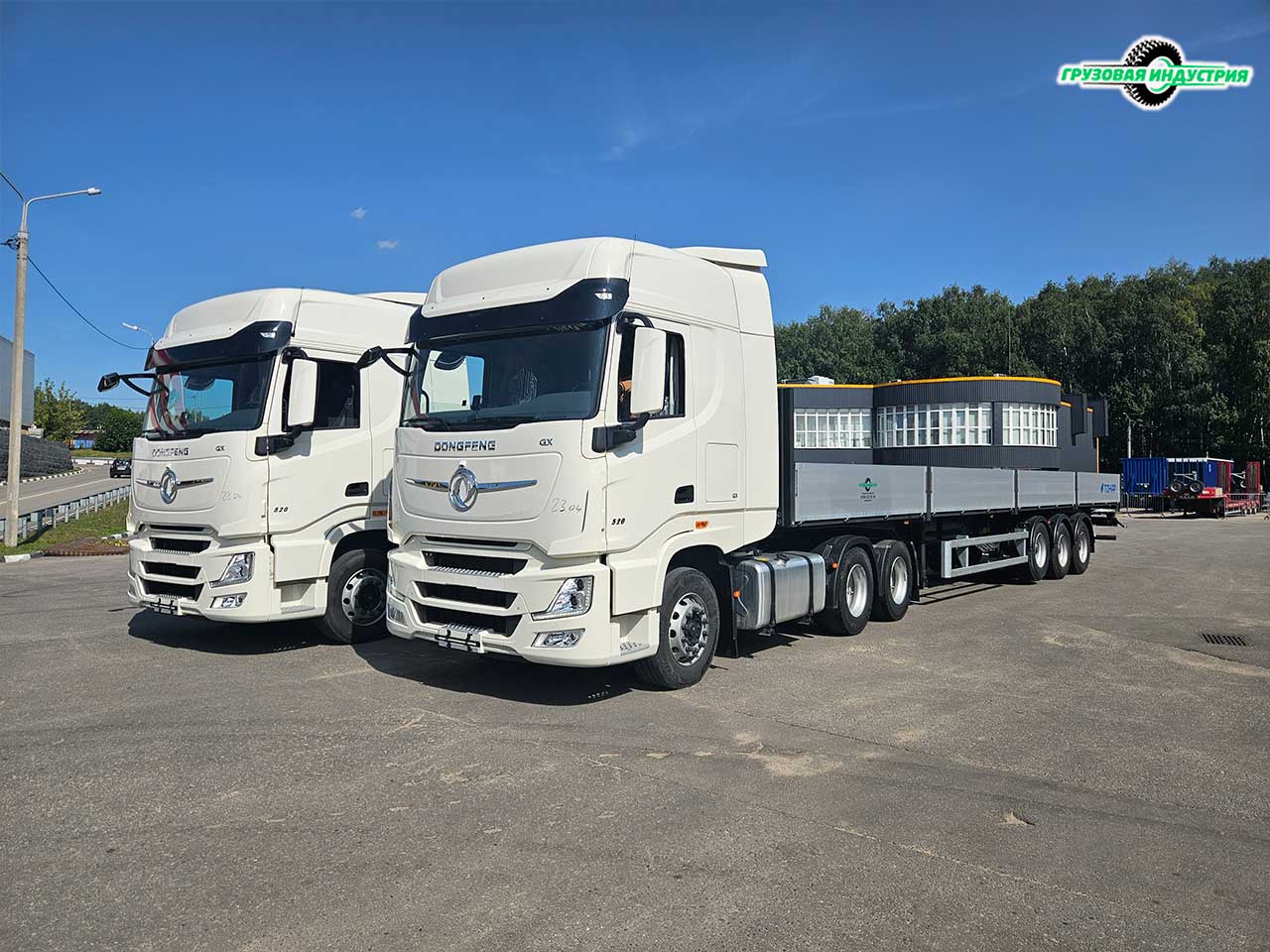 Отгрузка 2-х сцепок тягачи Dongfeng GX 4x2 и 2-х полуприцепов бортовая платформа Тонар В3-13К в г. Москва.