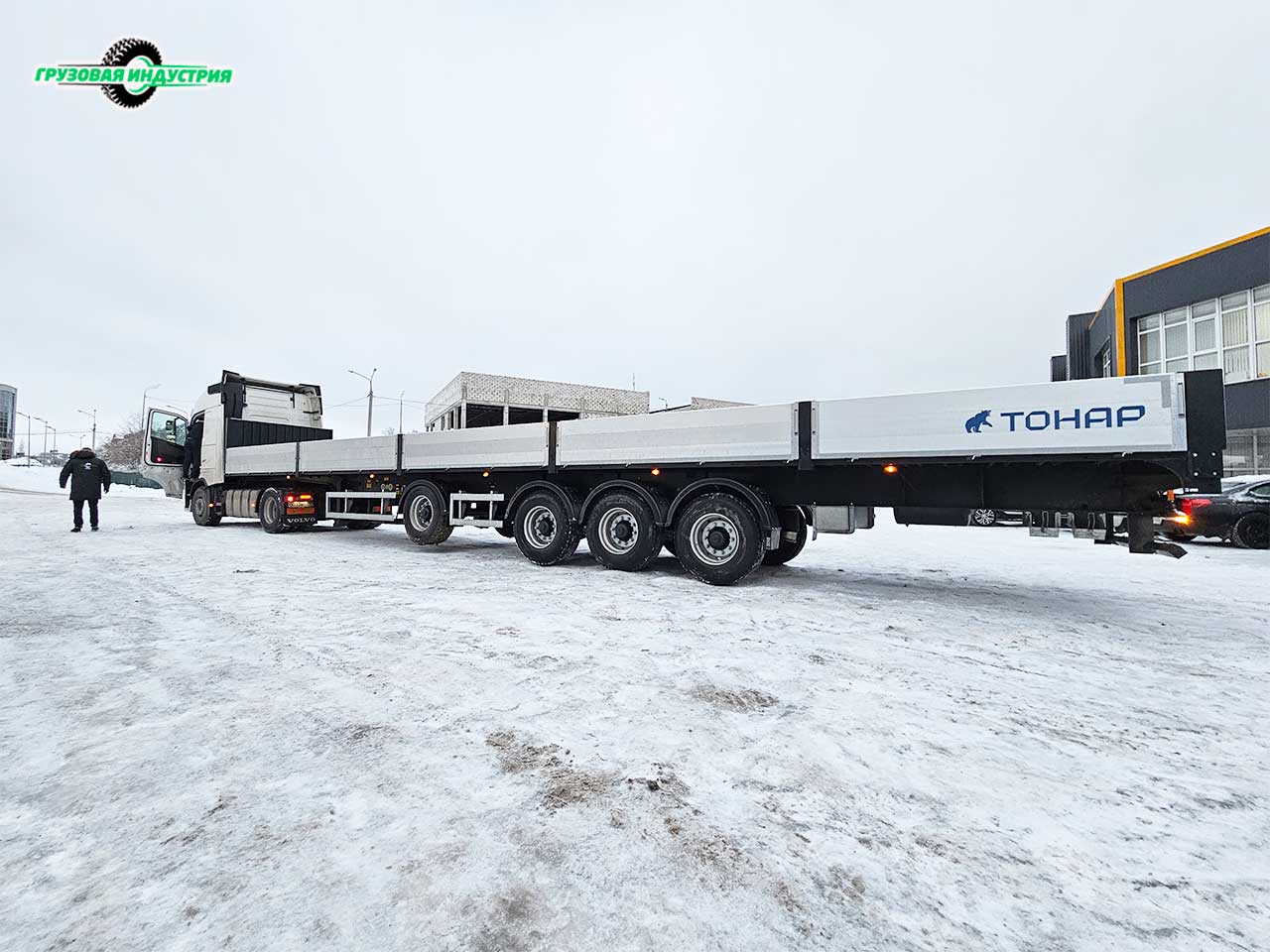 Отгрузка сцепки Volvo FH 4x2 и полуприцепа бортовой платформы Тонар В4-16VK в г. Москва