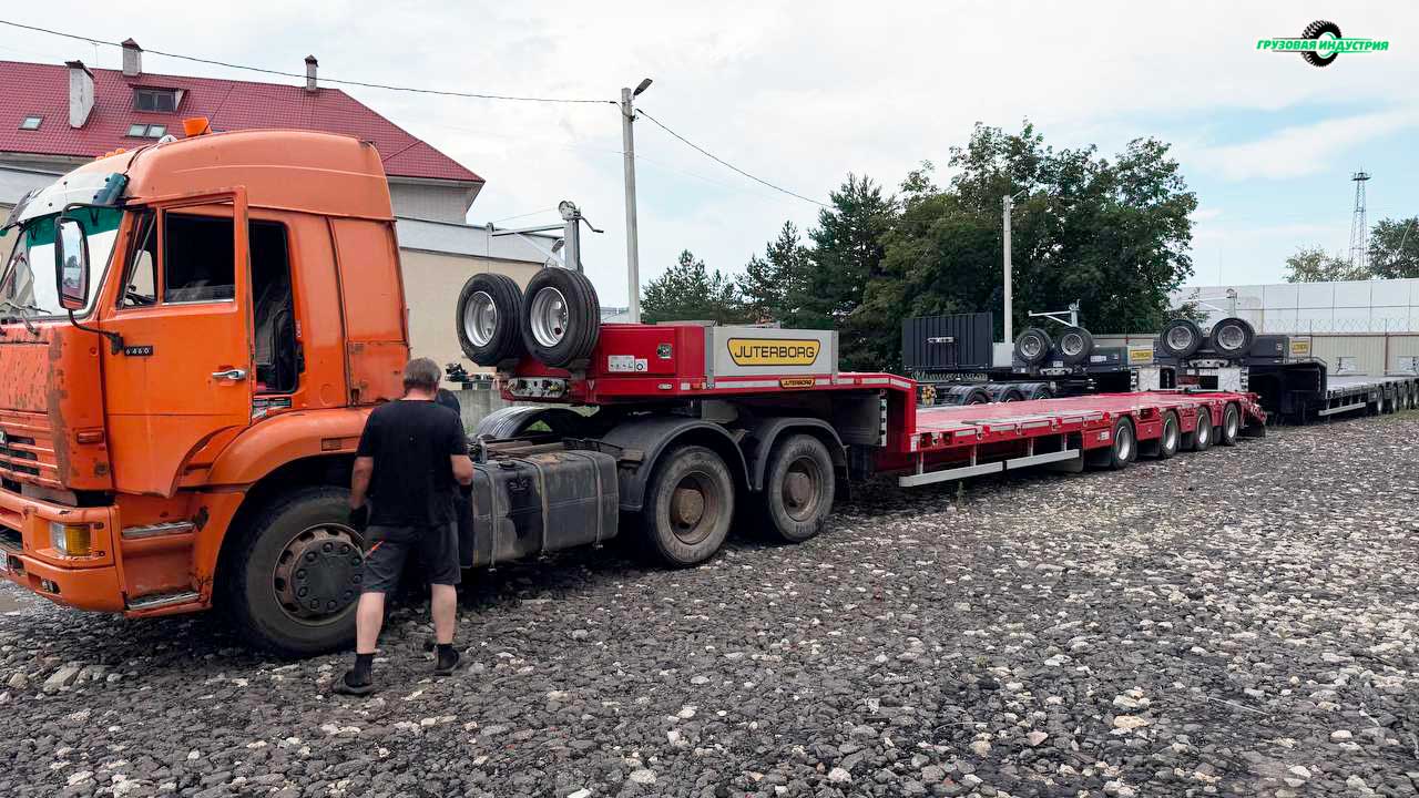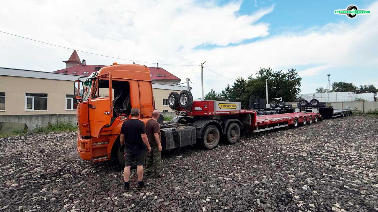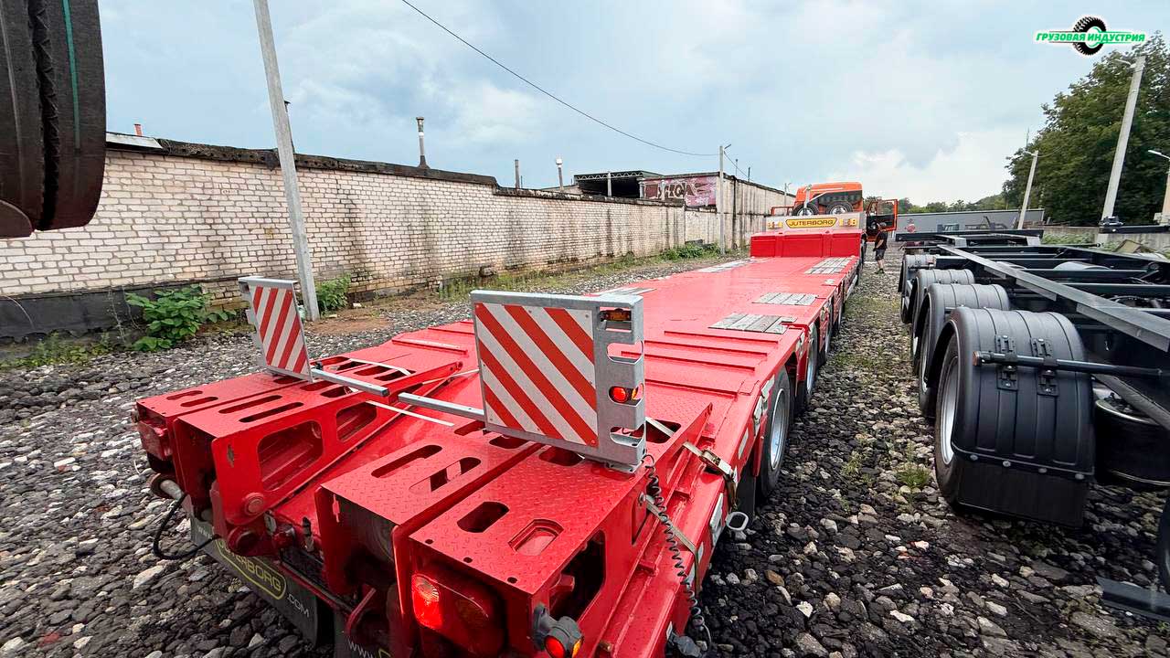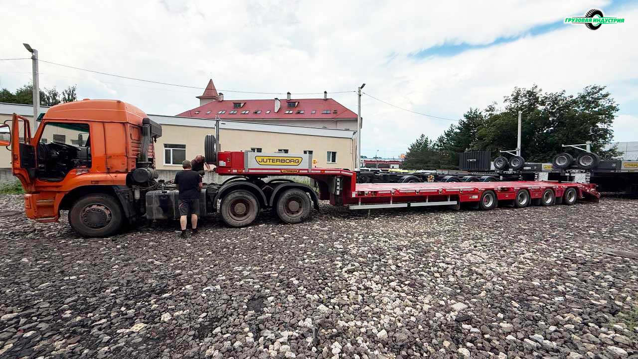 Отгрузка полуприцепа трала Juterborg JTB-50 с уголками в г. Псков.